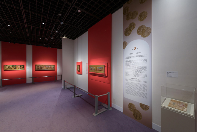 その脇に、今回期間限定で公開のテンペラ画《聖母子と洗礼者聖ヨハネ》の丸い板がかかっています。