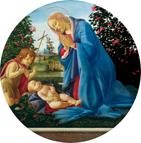 | サンドロ・ボッティチェリ 《聖母子と洗礼者聖ヨハネ》 1477-1480年頃、テンペラ・板、直径96.5cm ピアチェンツァ市立博物館 ©Musei civici di Palazzo Farnese - foto Carlo Pagani